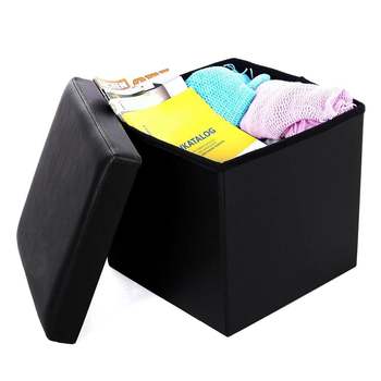 กันน้ํา Cube ออตโตมันหนังเทียมเรียบเท้าพับออตโตมันสําหรับห้องนั่งเล่น